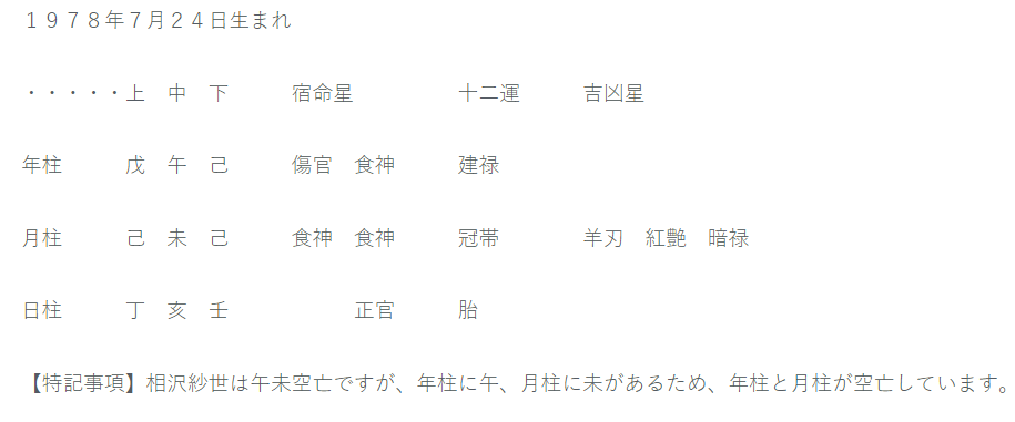 四柱推命鑑定命式|相沢紗世