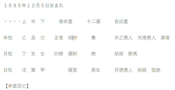 それでは命式を見ていきましょう。