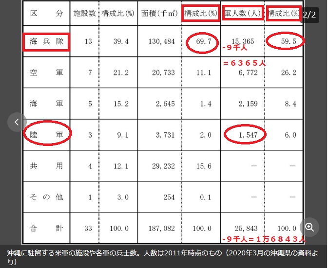 在沖米軍は全員でたった2万5843人。その内約60%が海兵隊員で1万5365人いますがこれから9千人も減らすのです。残りはたったの6365人です。