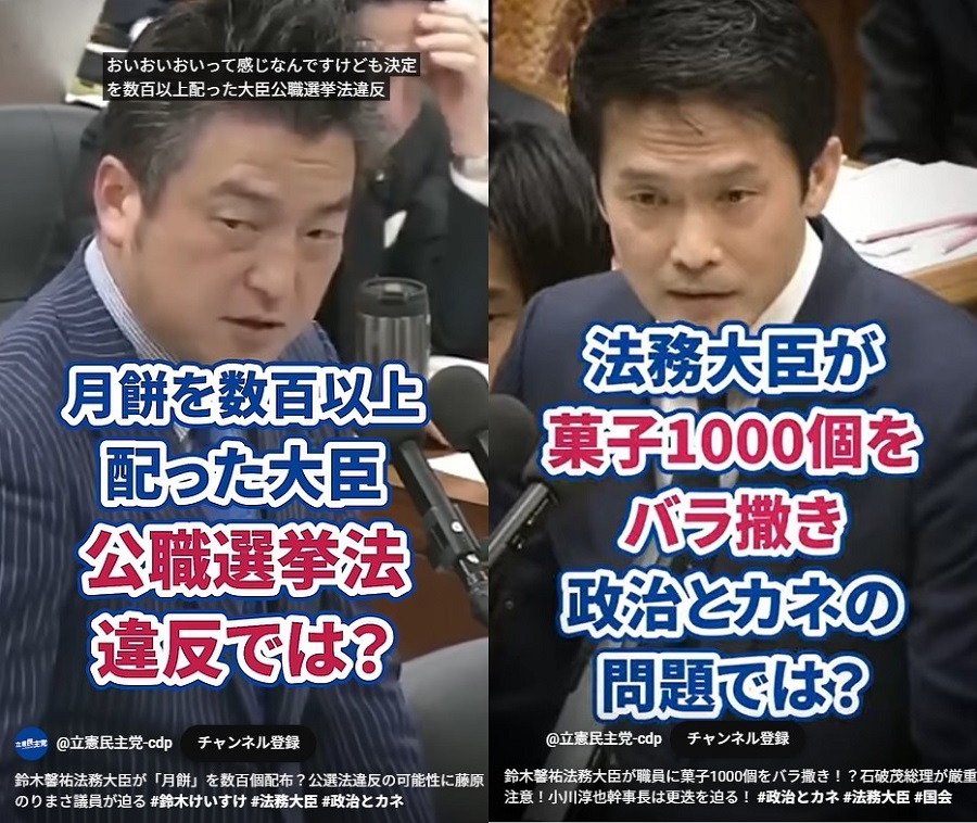 画像は鈴木を猛追及して大炎上させた立憲民主党の2議員 立憲民主党のショート動画より