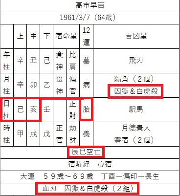 高市早苗と性格類型がほぼ一致する(己亥ー胎)世界的超有名人の命式を並べました。さて誰でしょう?ヒント、外国人女性で今時の人です。