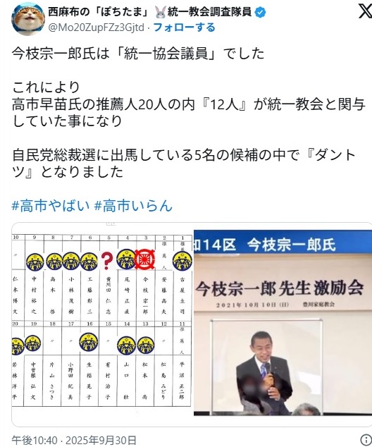 今枝は石破おろしの黒幕が統一教会であったことを証明するカルト議員
