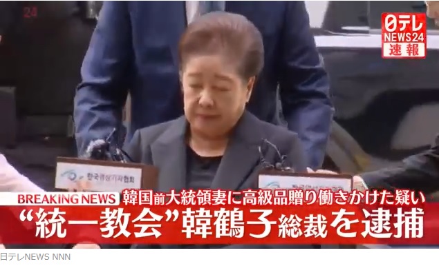 韓国の特別検察官は尹錫悦前大統領の妻・金建希氏に高級ブランド品を贈ったなどとして、世界平和統一家庭連合、いわゆる“統一教会”の韓鶴子総裁を逮捕しました。