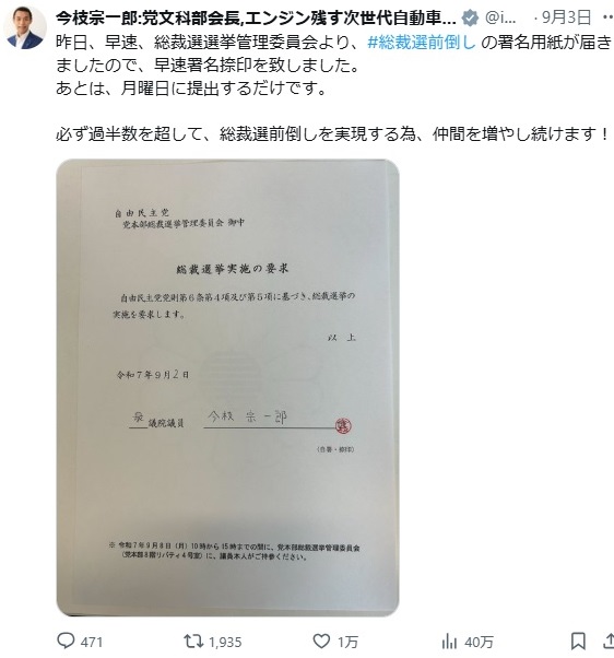 総裁選前倒し推進の過激派カルト議員