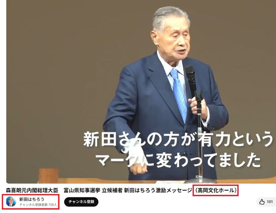 画像は当時、新田候補の応援に入った時の森喜朗 高岡文化ホールでの決起集会