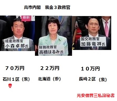 驚愕の裏金3政務官、高市ええ加減にせ~よ~