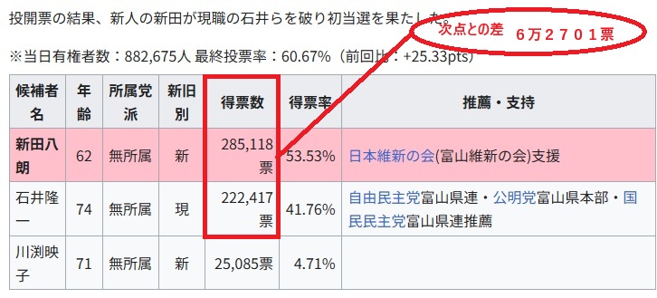 画像は2020年の富山県知事選(投開票2020年10月25日)・・Wikipediaより
