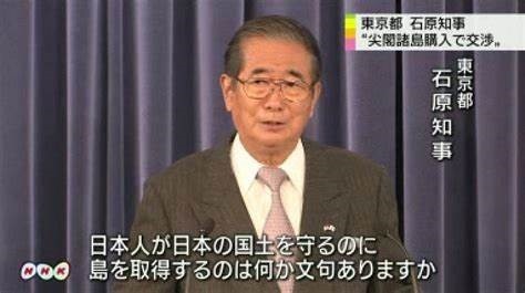 2012年に尖閣諸島の国有化で日中関係が荒れた時に石原慎太郎は東京都で買い取って中国との開戦も辞さないと強硬発言し当時の野田民主党政権を慌てさせました。