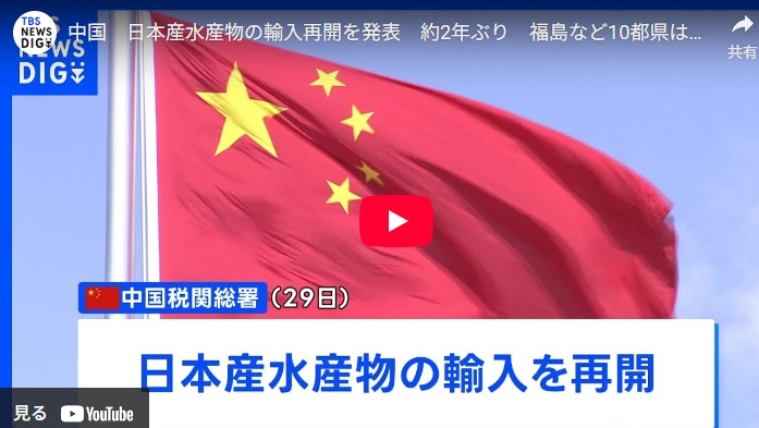 2023年8月、日本政府が福島原発の処理水の海洋放出を始めると中国政府は反発して日本産水産物の輸入を停止しました。