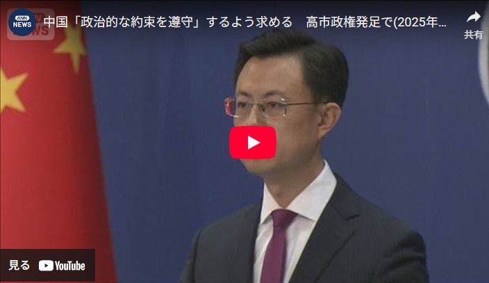 中国「政治的な約束を遵守」するよう求める 高市政権発足で(2025年10月21日)