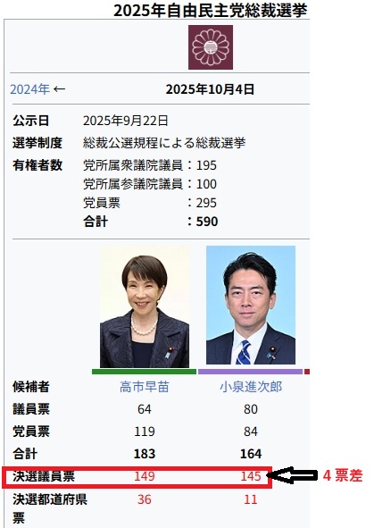 怪しげな党員票に民意は無く決選投票での議員票4票差は「決着」とは言えない
