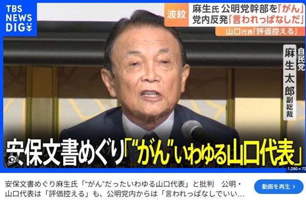 公明党連立離脱の遺恨となった麻生太郎の「ガン発言」