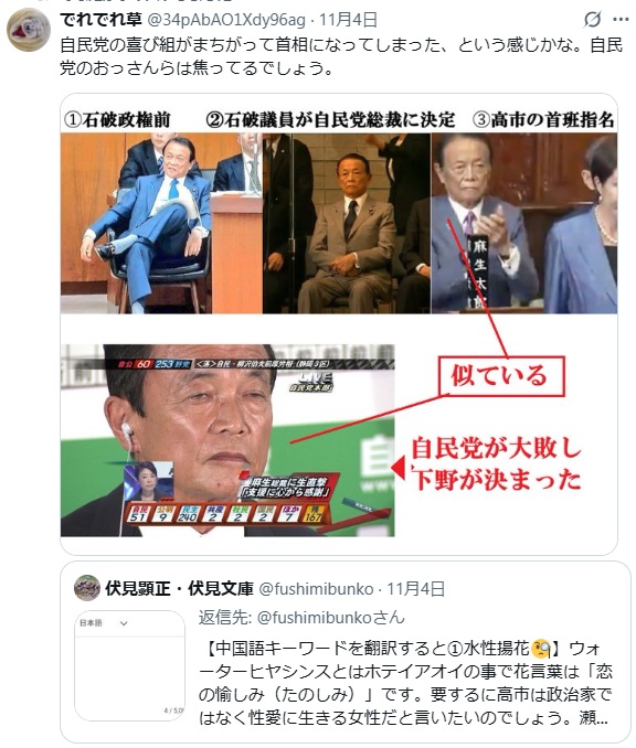 毎日新聞が25、26の両日に実施した全国世論調査で、高市早苗首相(自民党総裁)が副総裁に麻生太郎元首相を起用したことについて尋ねたところ、「評価しない」が51%で、「評価する」(27%)を上回った。「わからない」も21%あった。(転載ここまで)