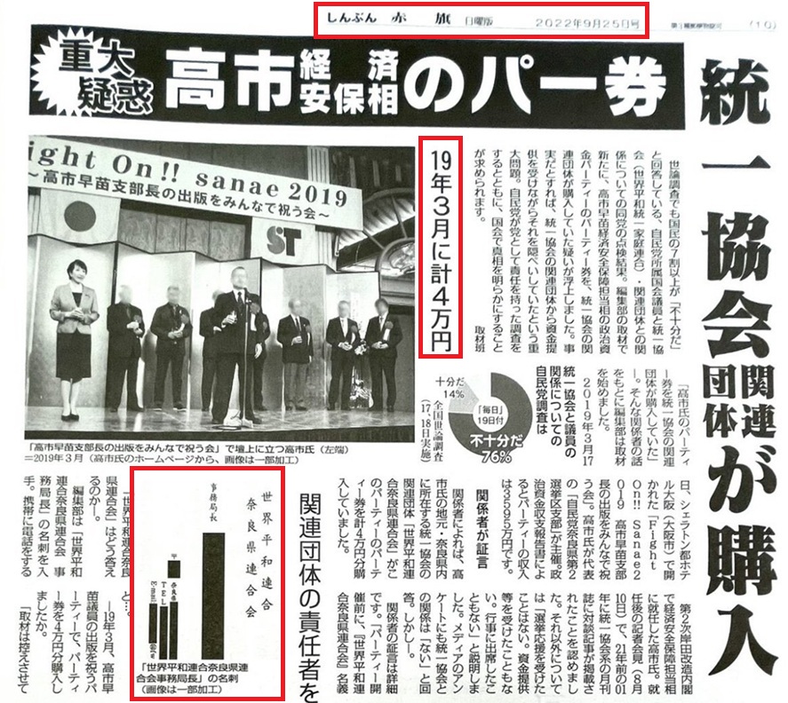 高市政権には統一教会汚染の閣僚が山ほどいるし高市本人も過去に統一教会にパー券を購入して貰った事実を赤旗に報道されています。