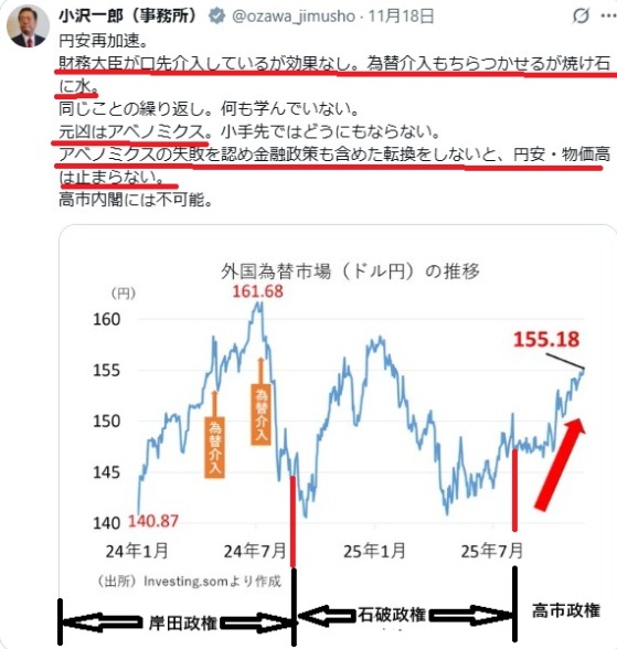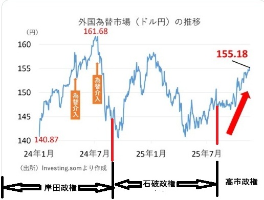アベノミクスを継続した安倍ー菅長期政権以降の政権、岸田、石破両政権ともインフレとの戦いに敗れ退陣した。2回の為替介入をやったがインフレ解消に失敗し支持率が20%台に低迷した岸田氏は総裁選不出馬を表明しました。