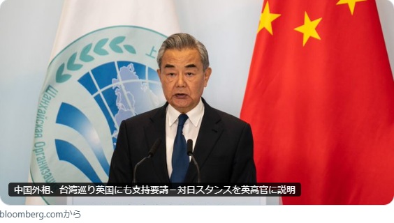 中国外相、台湾問題巡りフランスに支持要請-高市首相発言「挑発的」(ブルームバーグ)