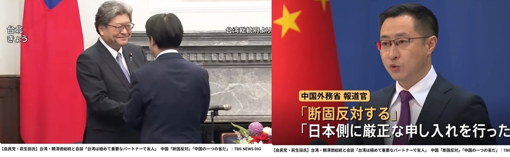 12月22日、裏金議員の萩生田光一らが訪台した。同日すかさず中国外務省報道官が猛烈に抗議した。
