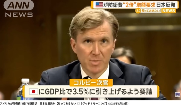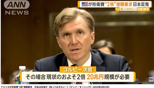 日米2+2(外務+防衛)会合の日程が6月22日に決まるとコルビーは「何の根拠も無く」日本への防衛予算の増額を更に引き上げた(怒)