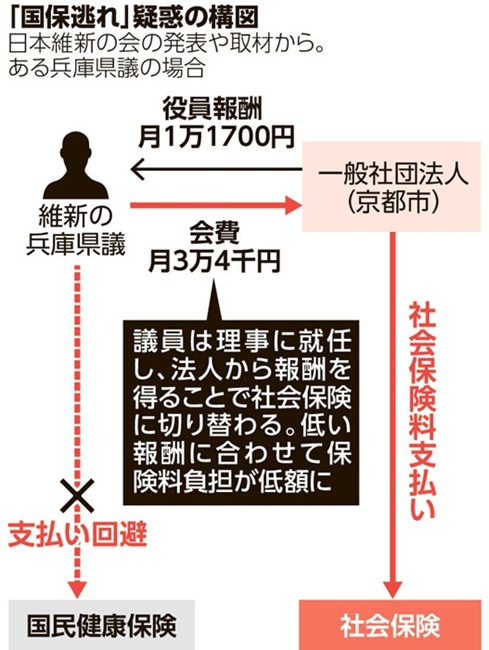 維新「国保逃れ」政党ぐるみの疑い強まる;議員間でマニュアルを共有