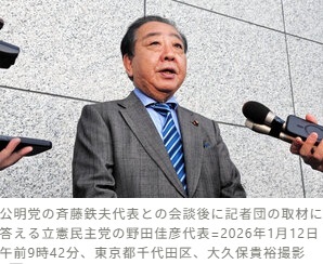 野田氏は斉藤氏の地元・広島3区について立憲候補の擁立見送りに言及しており同区を含む小選挙区での候補者調整が焦点となっている(転載ここまで)