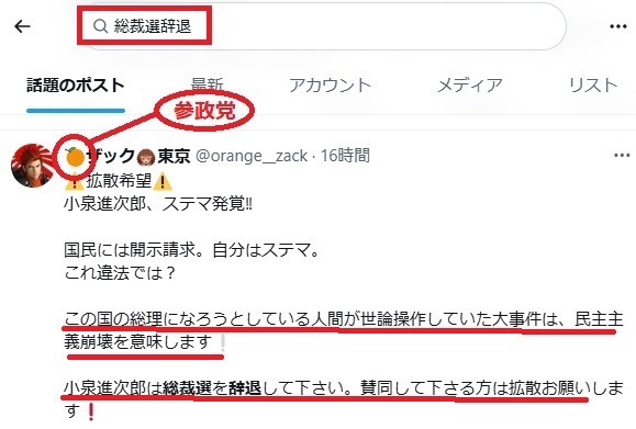 どうしても気になった点があります。#総裁選辞退と言う小泉進次郎を叩くトレンドワードを検索すると「如何にもな連中」が出て来ます。