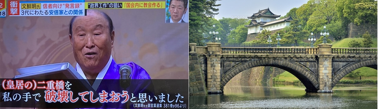 純粋な日本民族を根絶やしにし文鮮明が「二重橋を爆破したい」と言った様に皇室制度も廃止され日本人女性は全員、韓国人の男と強制結婚させられるでしょう。