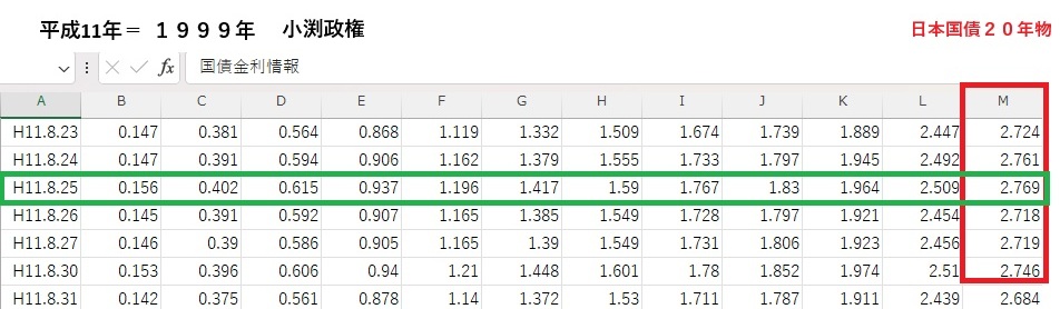 1999年は小渕政権ですが8月に利回りが2・769%と丁度、26年後の11/17に着けた高値の2・74%とほぼ並びます。