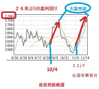10/4は自民党総裁選で高市が新総裁に選ばれた日、11/7は今、日中で外交断絶寸前になった「存立危機事態」の国会答弁の日でいずれも「高市絡み」です(怒)