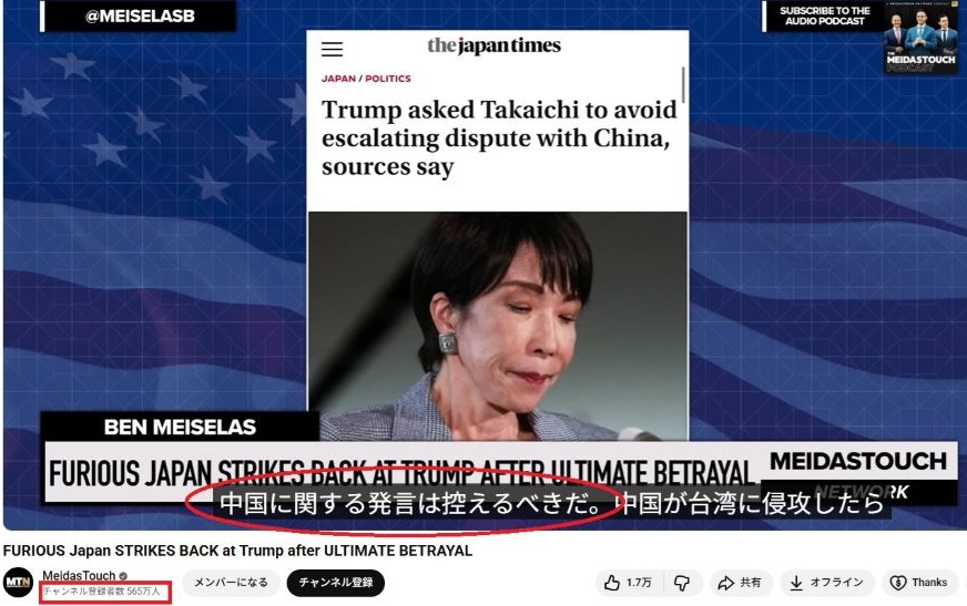 アメリカの独立系ニュース番組のmeidas touchです。登録者数560万人の信頼度の高さと英語発信で世界中への拡散力が格段に違います。