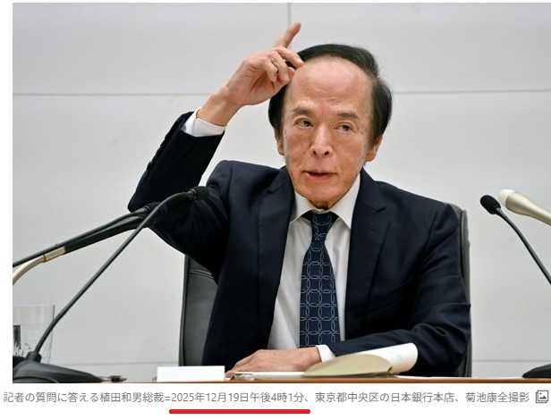 米国の関税政策が経済に与える影響は限定的で、来年の春闘でも高い賃上げが続くと判断した。経済と物価の状況に応じ、今後も利上げを続ける姿勢だ。