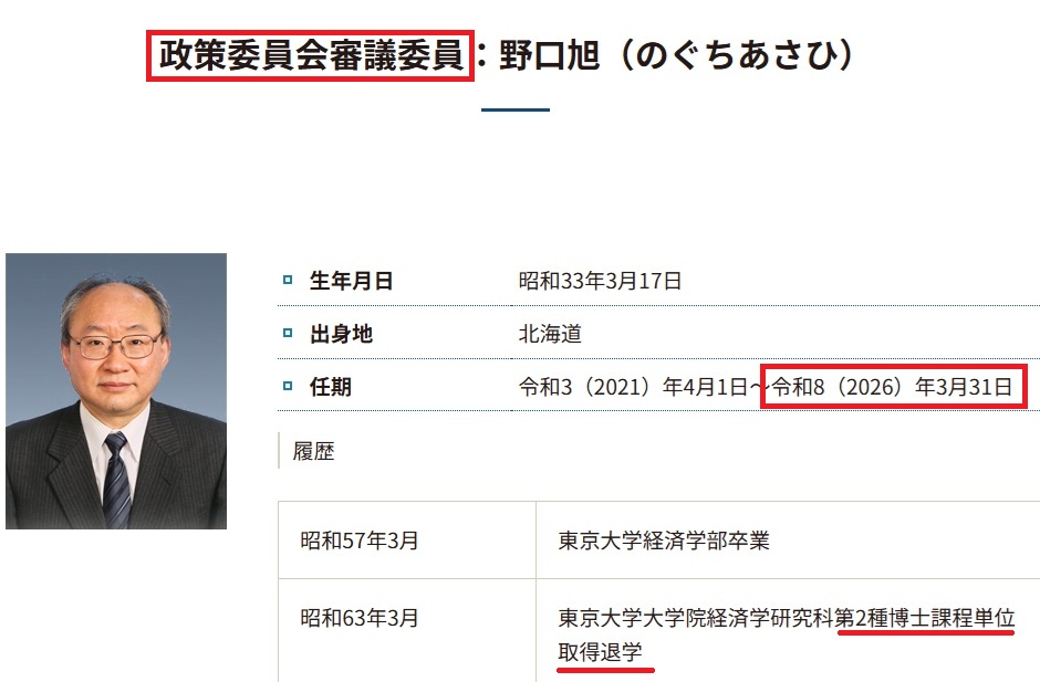 ですから来年の3月末で任期が切れる野口の後任は「リフレ派ではない真っ当な経済学者」にすべきです。