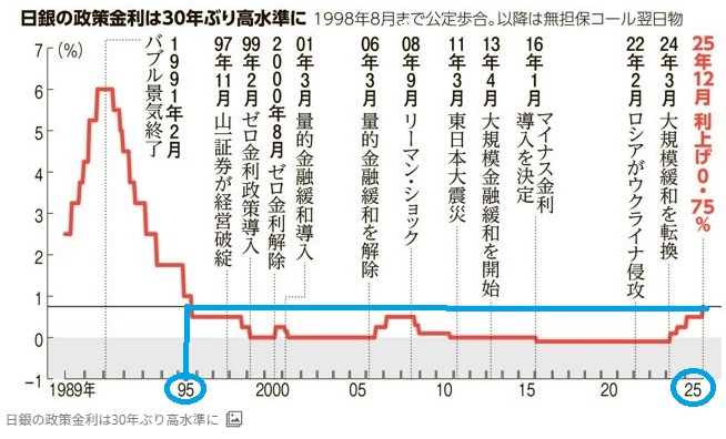 日銀が利上げ決定 政策金利0.75%、30年ぶり高水準に