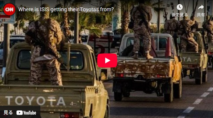 10年前のCNN報道です。全盛期のイスラム国がハイラックスを自家製の機甲師団として機動的に使いこなしていることに今更ながら驚きます。