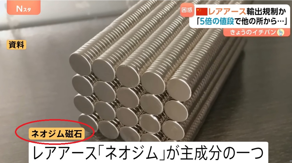 レアアースの塊とも言っていい、ネオジム磁石が無いと、ガソリン車であれ、ハイブリッド車であれ、電気自動車であれ、製造できなくなるのです。