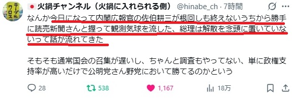 高市に「解散報道」を唆したのはやっぱりこいつだ