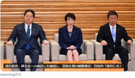 政権発足当初から「党幹部が高市と連絡が取れないと怒っている」と言う報道が目立ちました。