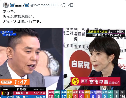 星浩さんが言っているので事実でしょう。高橋洋一や岩田明子の様な高市真理教の連中は「麻生発言はガス抜きで打合せ済みのプロレスだ」と「高市ー麻生不仲説」の打ち消しに必死でした。高橋や岩田が嘘の根拠としたのは2005年の郵政解散の「森喜朗と小泉純一郎の干からびたチーズ芝居」だったが程なくして麻生太郎と鈴木幹事長は事前に相談を受けていないことが本人たちの証言で明らかになった。選挙後に大きな遺恨として残るでしょう。