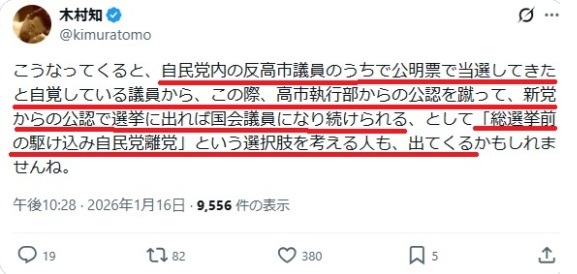 通名高橋洋一(本名;高洋一、コ・ヨンイル)がいつも言う様に「高市の内閣支持率が高いので楽に当選して単独過半数獲得する」のなら公明票要らないでしょ(笑)