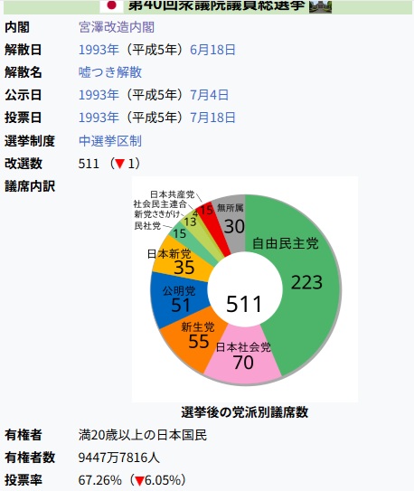 1993年の衆院選、宮沢内閣