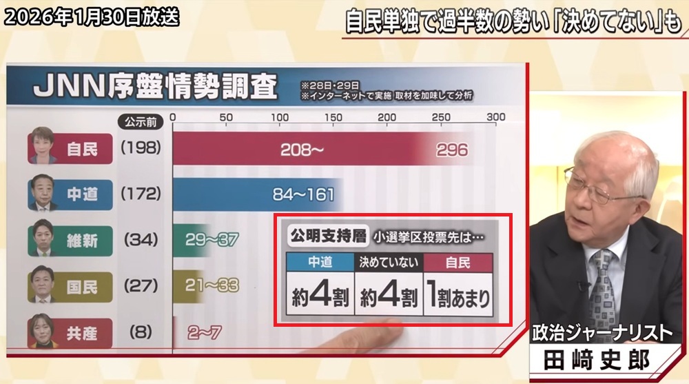 現状は飽くまでも序盤情勢です。公明党ー創価学会に太いパイプを持つ田崎史郎氏によると公明党幹部が「ようやく中道の組織の腰が据わった」と言ったのが1月29日だそうです。