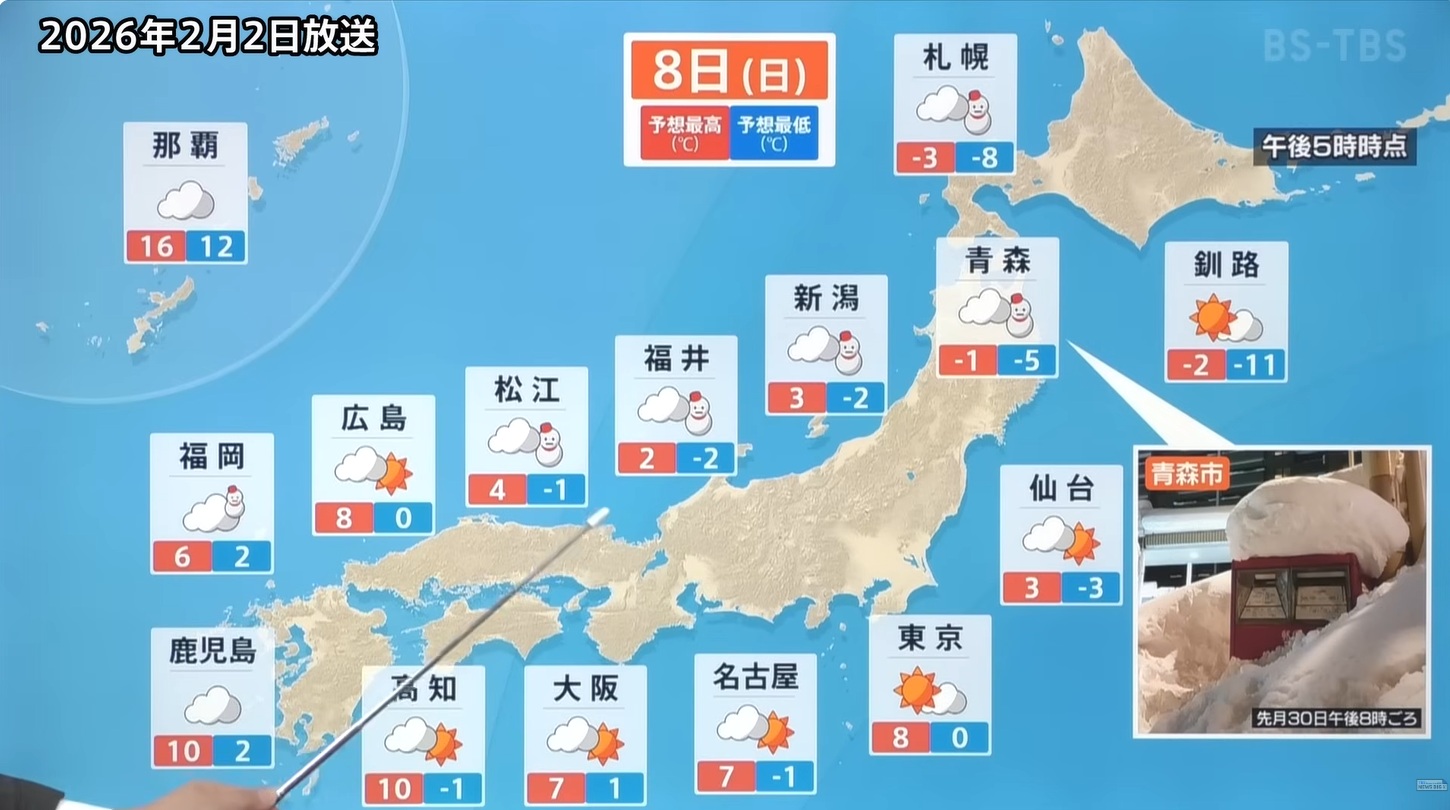 ②投開票日の2月8日の全国の天気はどうか?堤伸輔氏も「未だ私の家にも投票用紙が届いていない(2月2日収録)」と発言。首都圏も同じ様だ。