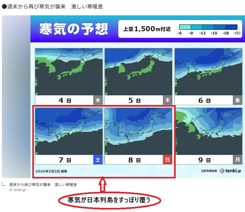 金曜の夜から列島をすっぽりとこの冬一番の寒気が覆う。投票率は全国で下がる。「天祐」かな。拙著でも触れたが選挙の結果如何にかかわらず高市が2月を越すのは難しい。