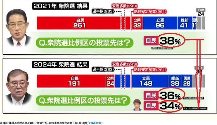 そこに落選中の裏金議員を一人でも復活させたら内閣支持率は30%を切るだろうし自民党支持率は更に下がるでしょう。