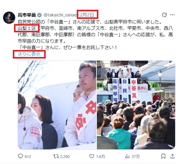 前日2月2日に高市が現地に応援演説に入っていたが「高市効果」は感じられないのか?