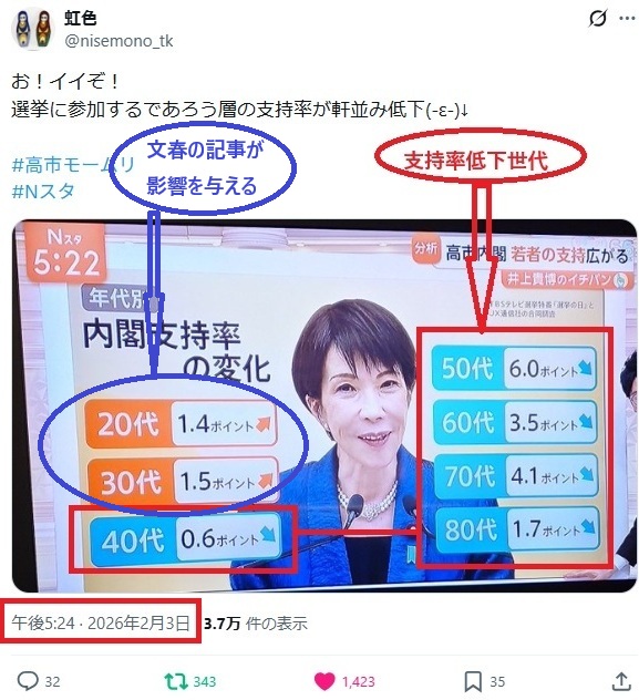 2月5日の朝刊一面で扱う所も出てくるでしょう。これは残り4日の態度を保留している有権者、特に無党派層の投票行動に大きな影響を与えます。